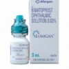 Lumigan 0.01% Ophthalmic Solution is a medicine used to reduce pressure in the eyes in adults with glaucoma and high pressure in the eye. If the pressure in your eye is too high it can damage your sight, potentially leading to blindness. It works by helping fluid flow from inside the eye into the blood.